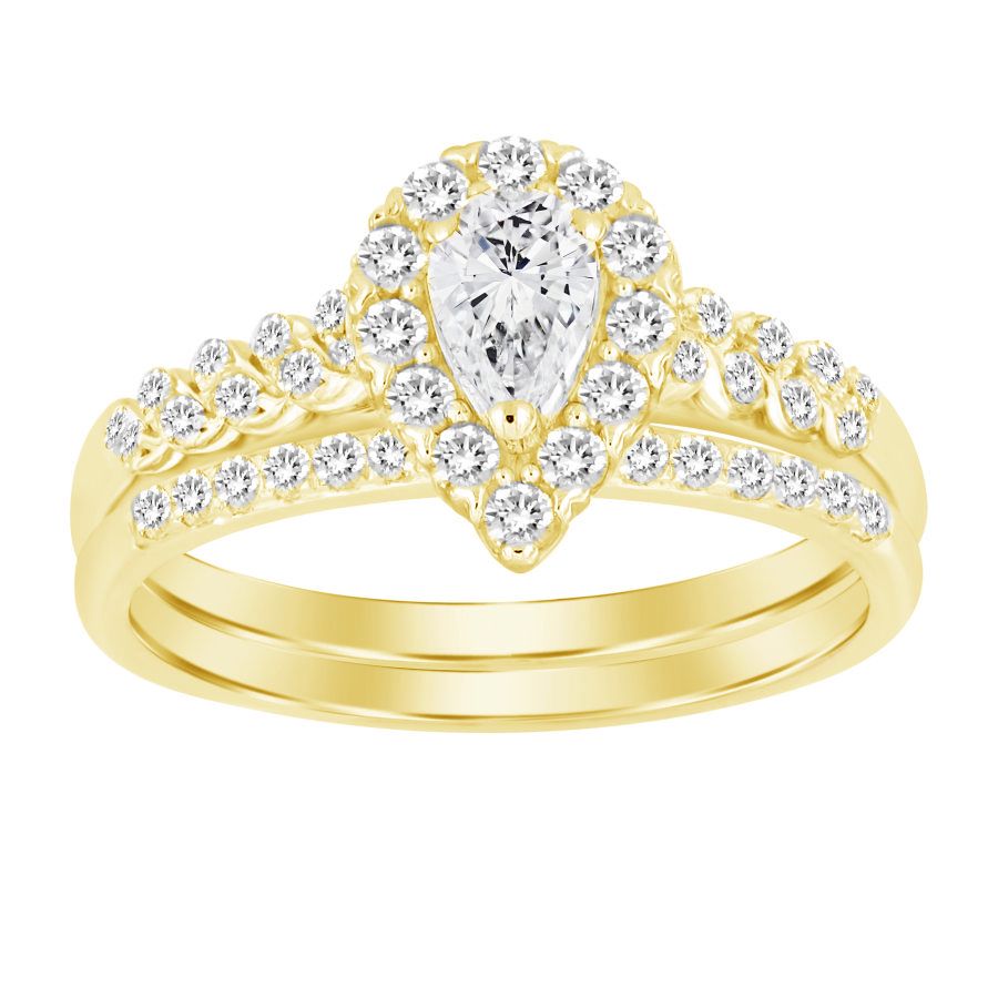 LADIES BRIDAL SET 0.50CT ROUND/PEAR DIAMOND 18K YELLOW GOLD