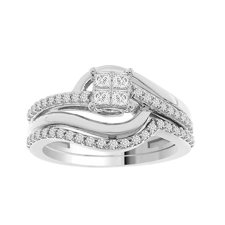 LADIES BRIDAL SET 0.50CT ROUND/PRINCESS DIAMOND 10K WHITE GOLD