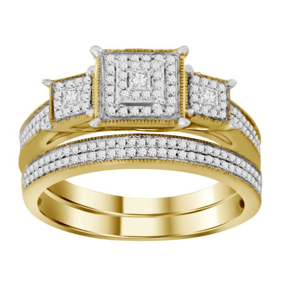 LADIES BRIDAL SET 0.50CT ROUND/PRINCESS DIAMOND 10K YELLOW GOLD