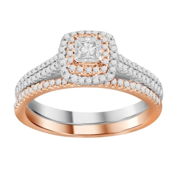 LADIES BRIDAL SET 0.50CT ROUND/PRINCESS DIAMOND 14K ROSE GOLD