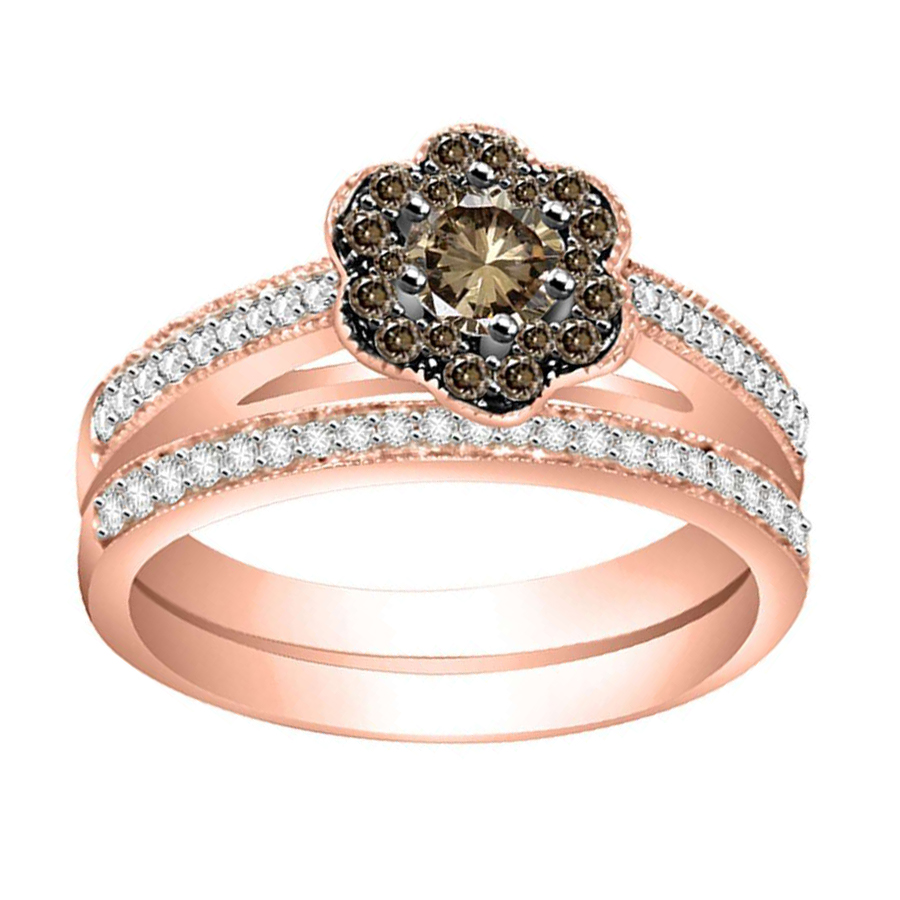 LADIES BRIDAL SET 0.55CT ROUND DARK BROWN DIAMOND 14K ROSE GOLD