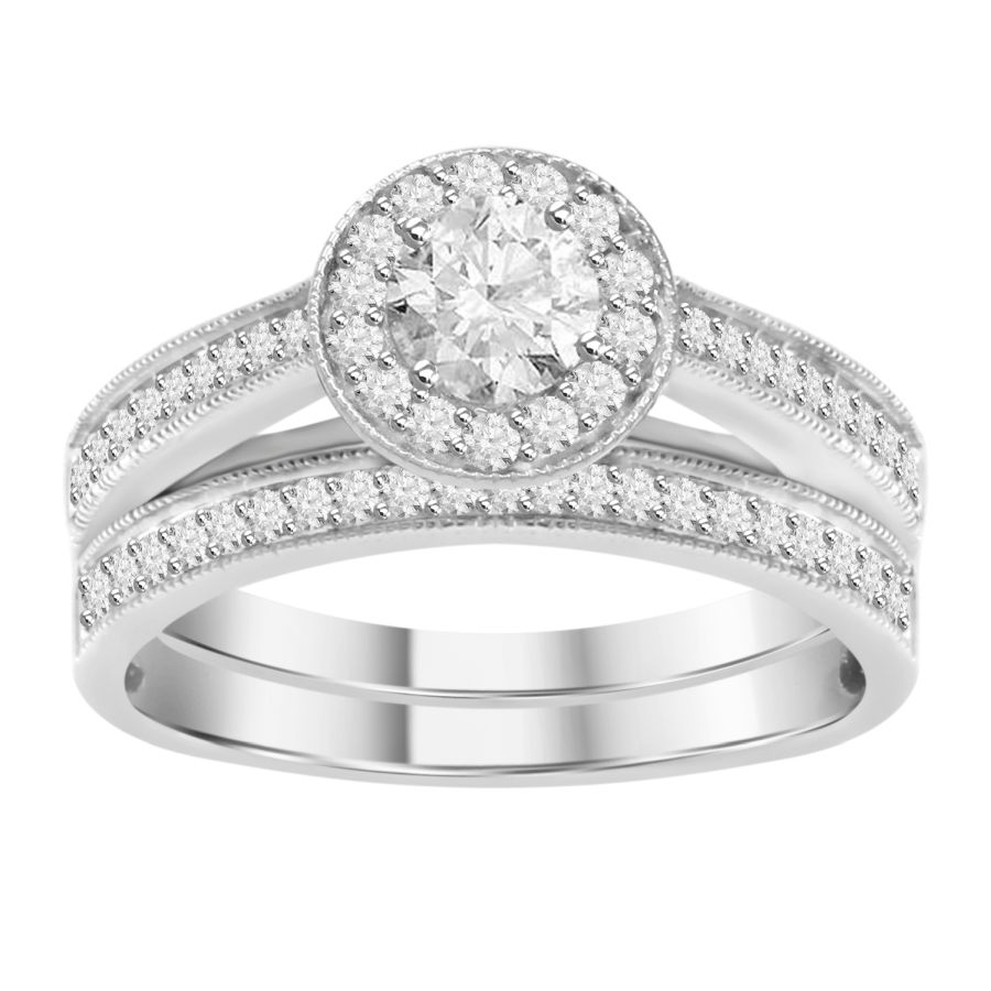 LADIES BRIDAL SET 0.55CT ROUND DIAMOND 14K WHITE GOLD
