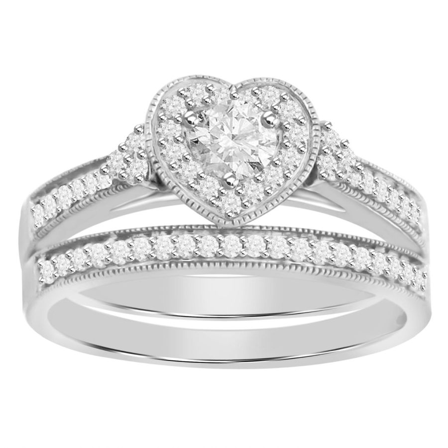 LADIES BRIDAL SET 0.25CT ROUND DIAMOND 10K WHITE GOLD