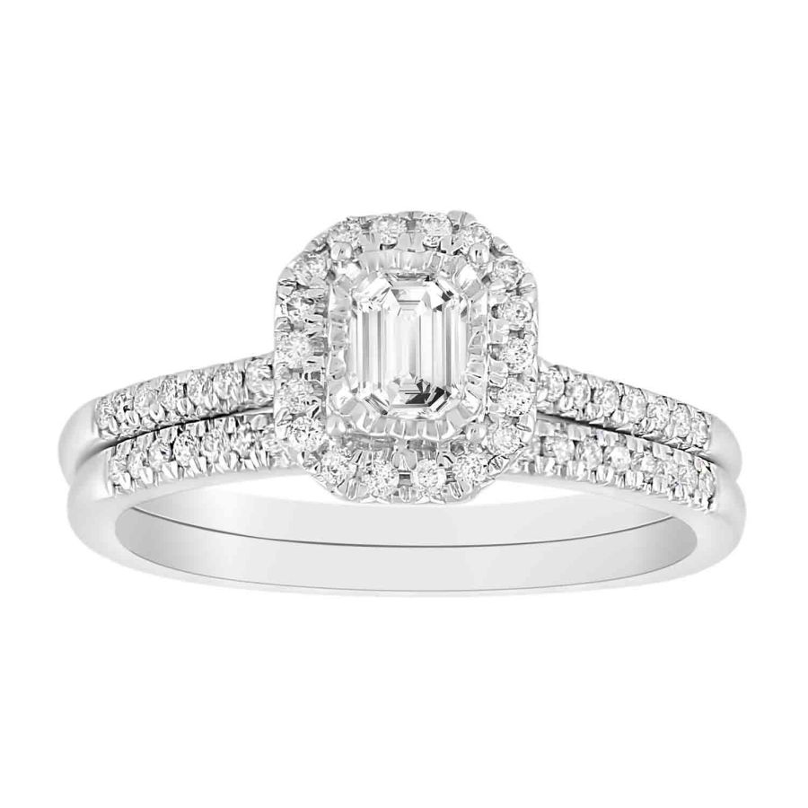 LADIES BRIDAL SET 0.60CT ROUND/EMERALD DIAMOND 14K WHITE GOLD (CENTER STONE 0.33CT EMERALD DIAMOND)