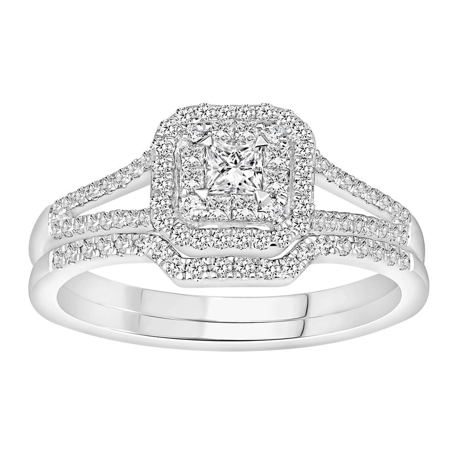 LADIES BRIDAL SET 0.60CT ROUND/PRINCESS DIAMOND 14K WHITE GOLD