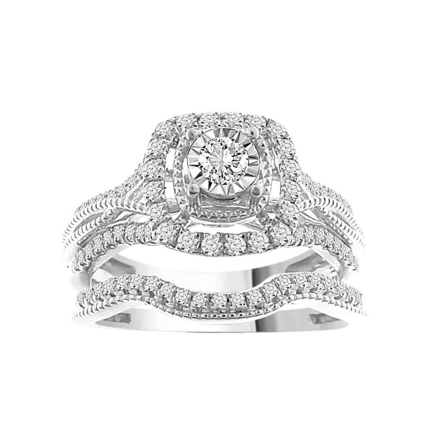 LADIES BRIDAL SET 0.65CT ROUND DIAMOND 14K WHITE GOLD