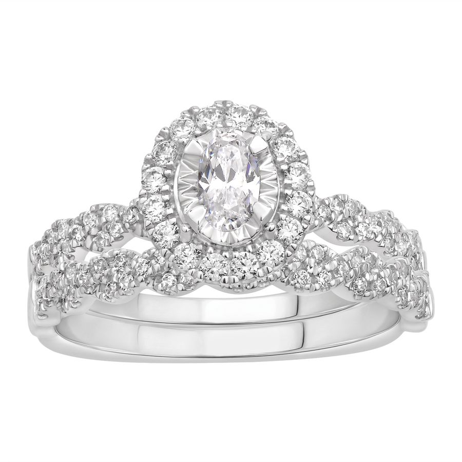 LADIES BRIDAL SET 0.65CT ROUND DIAMOND 14K WHITE GOLD (CENTER STONE 0.20CT OVAL DIAMOND)