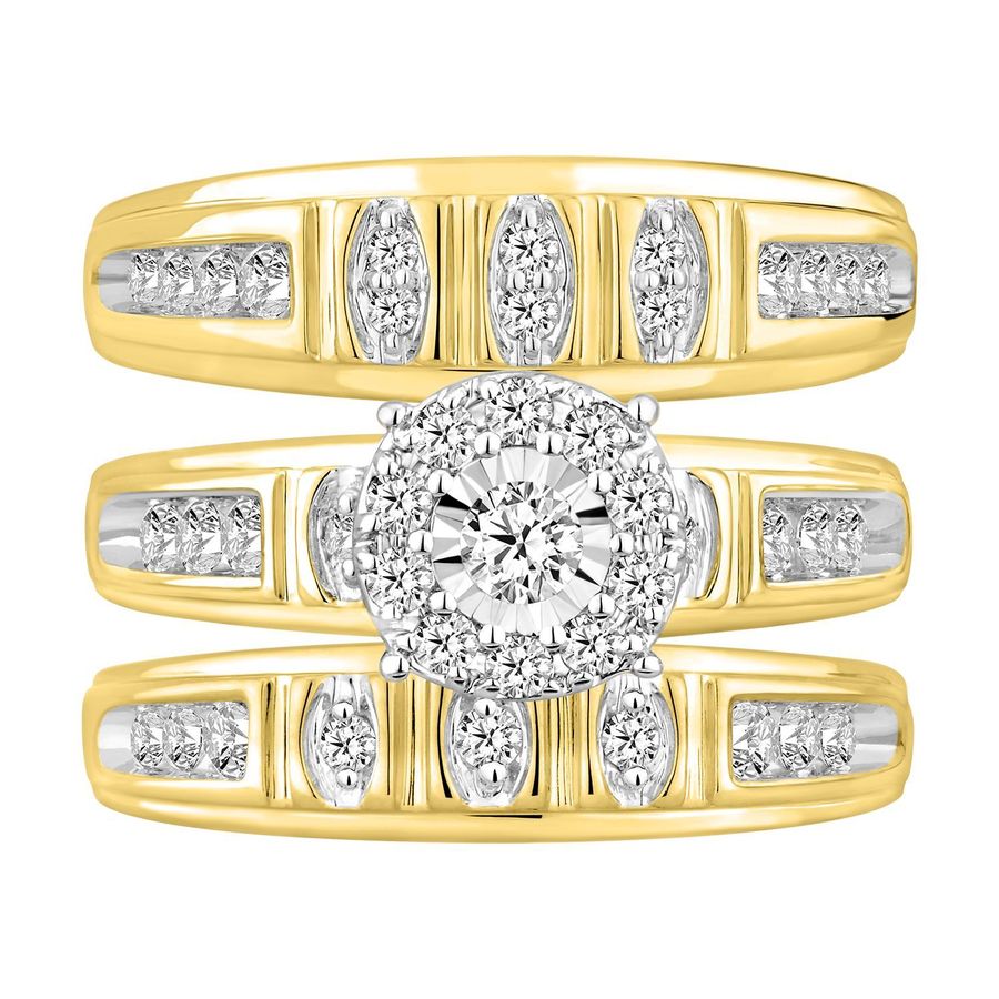 LADIES BRIDAL SET 0.70CT ROUND DIAMOND 10K YELLOW GOLD
