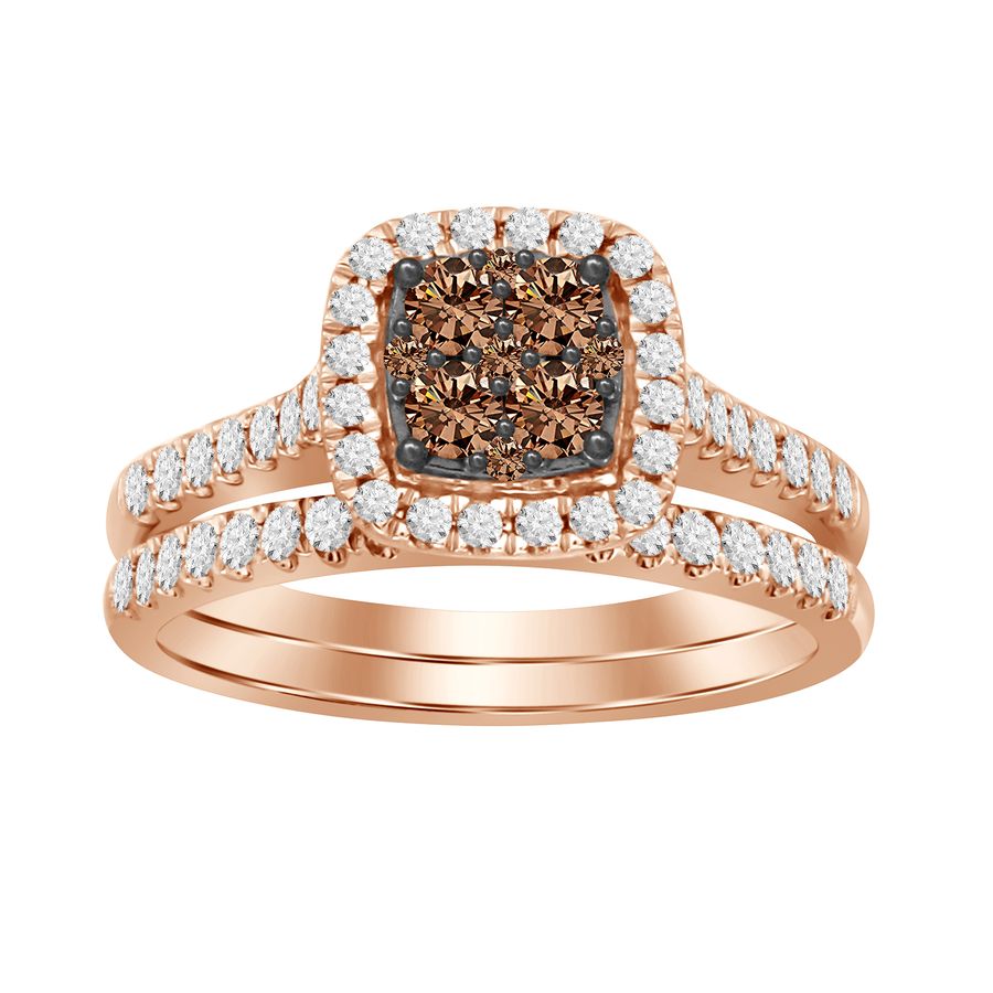 LADIES BRIDAL SET 0.75CT ROUND/CHOCOLATE DIAMOND 14K ROSE GOLD