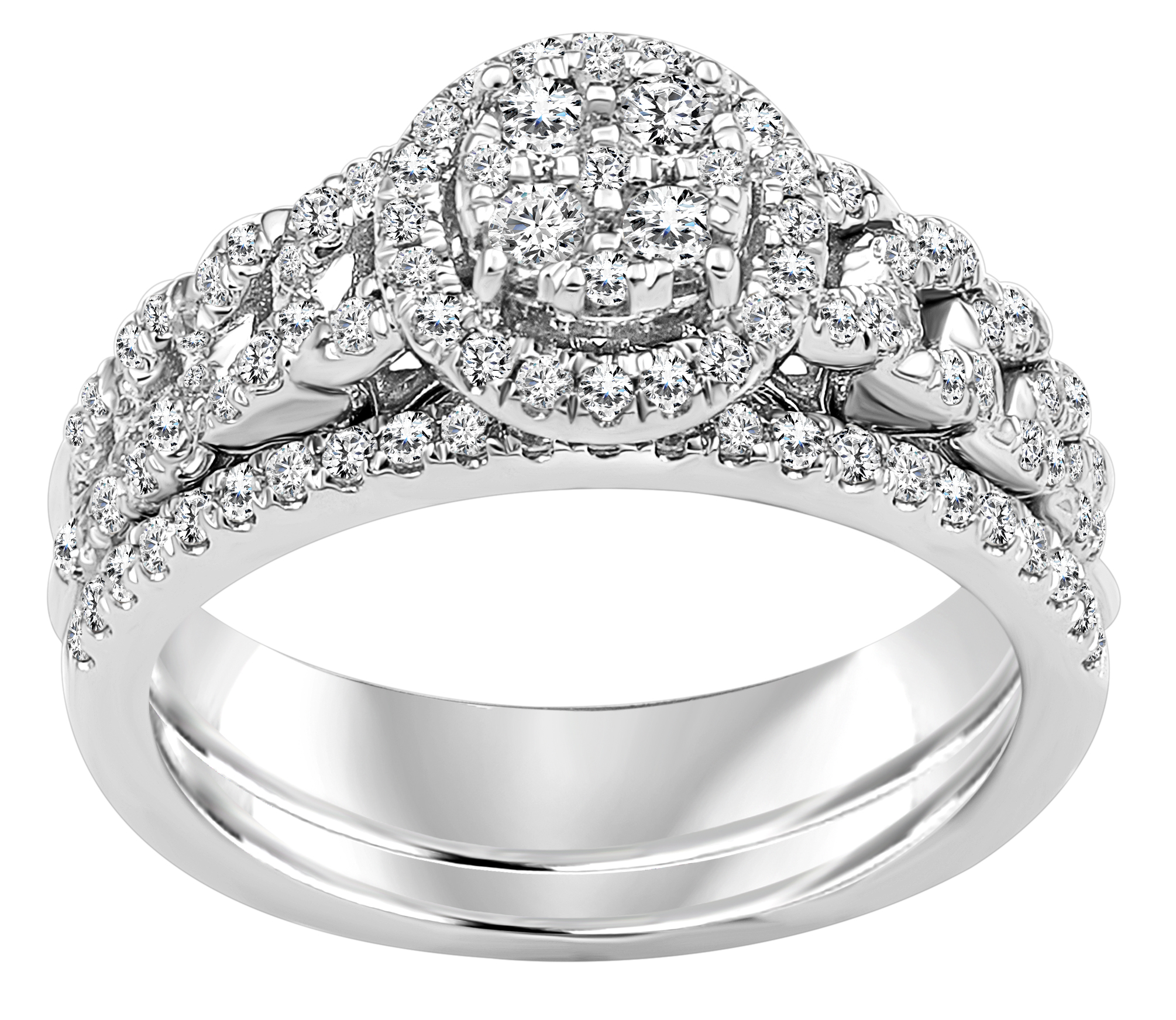 LADIES BRIDAL SET 0.75CT ROUND DIAMOND 10K WHITE GOLD