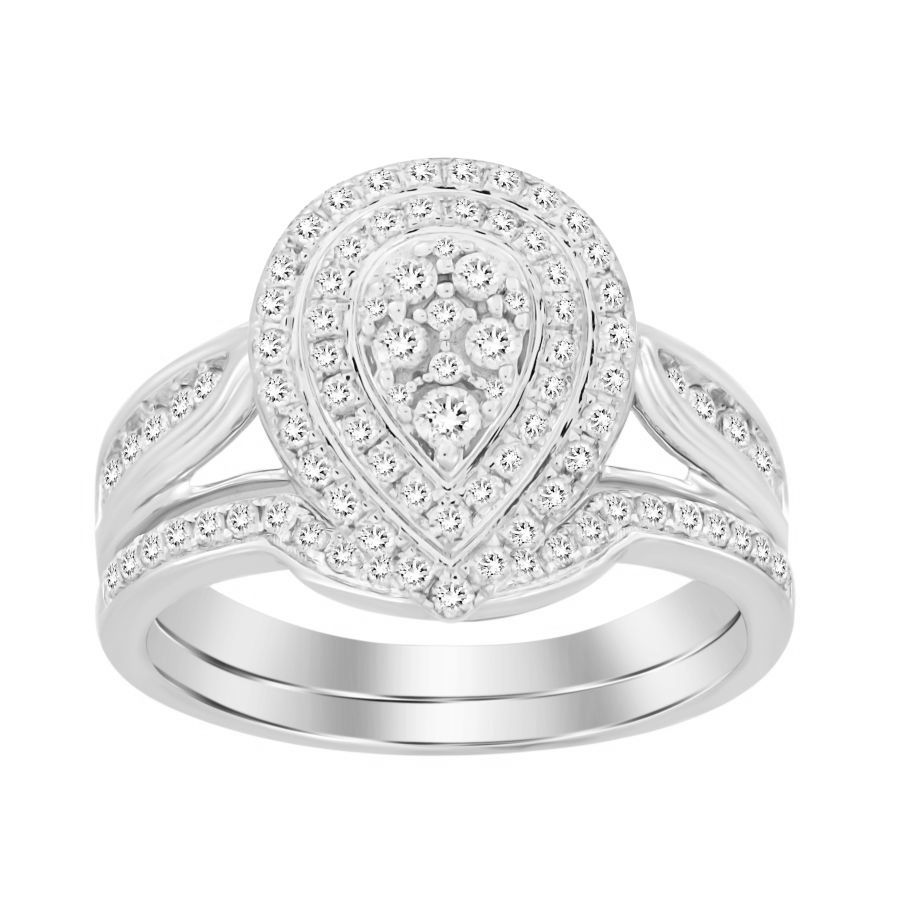 LADIES BRIDAL SET 0.75CT ROUND DIAMOND 10K WHITE GOLD