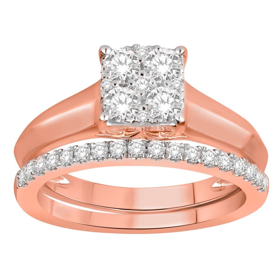 LADIES BRIDAL SET 0.75CT ROUND DIAMOND 14K ROSE GOLD