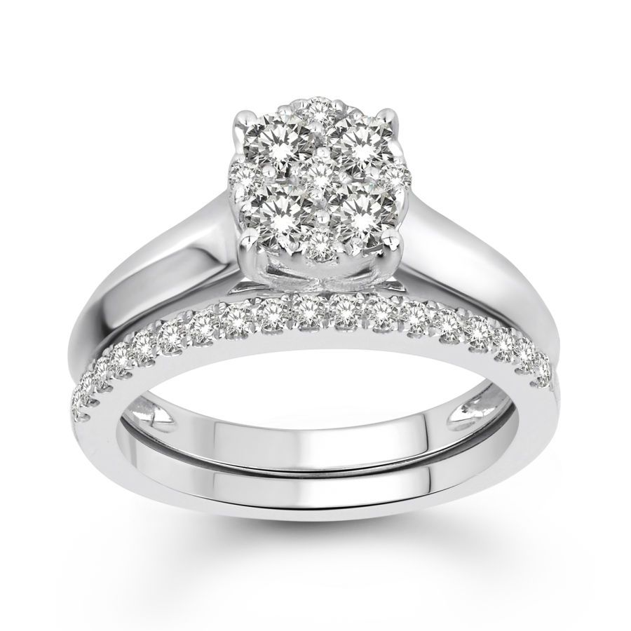 LADIES BRIDAL SET 1.00CT ROUND DIAMOND 14K WHITE GOLD