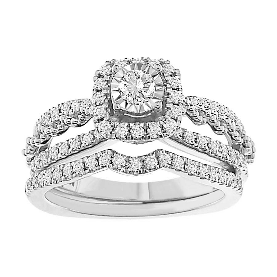 LADIES BRIDAL SET 0.75CT ROUND DIAMOND 14K WHITE GOLD