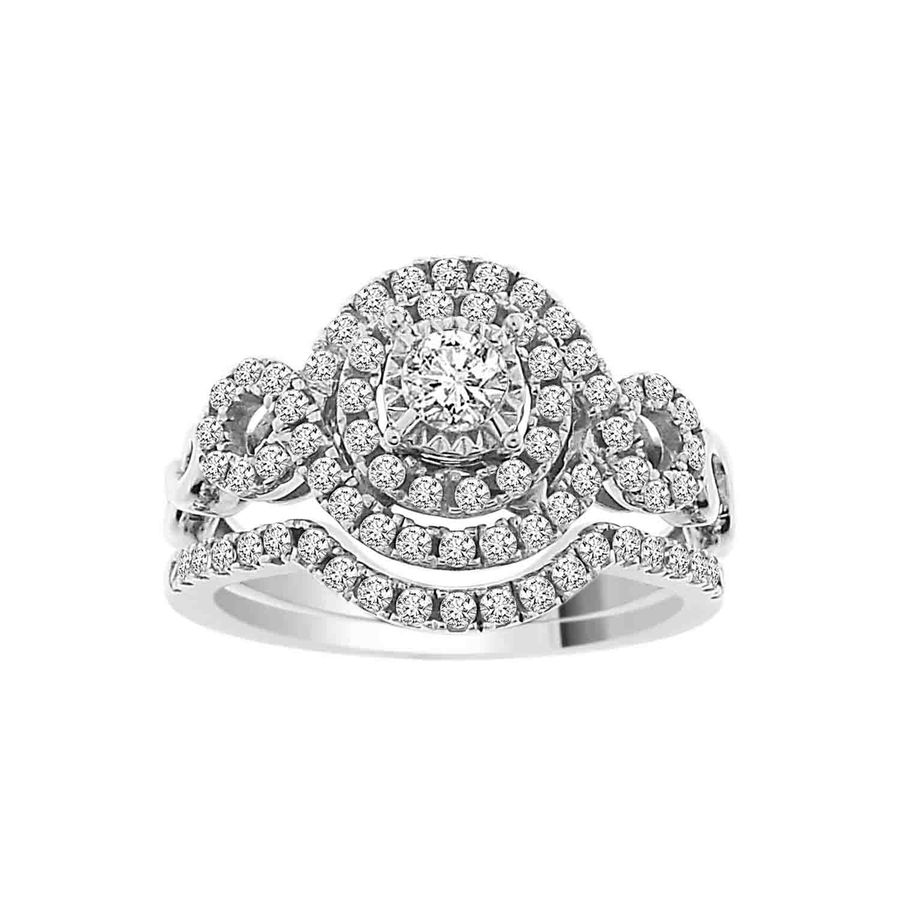 LADIES BRIDAL SET 0.75CT ROUND DIAMOND 14K WHITE GOLD