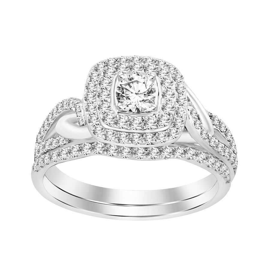 LADIES BRIDAL SET 0.75CT ROUND DIAMOND 14K WHITE GOLD