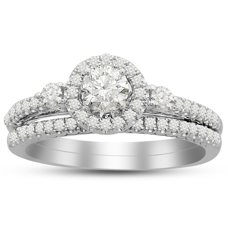 LADIES BRIDAL SET 0.75CT ROUND DIAMOND 14K WHITE GOLD