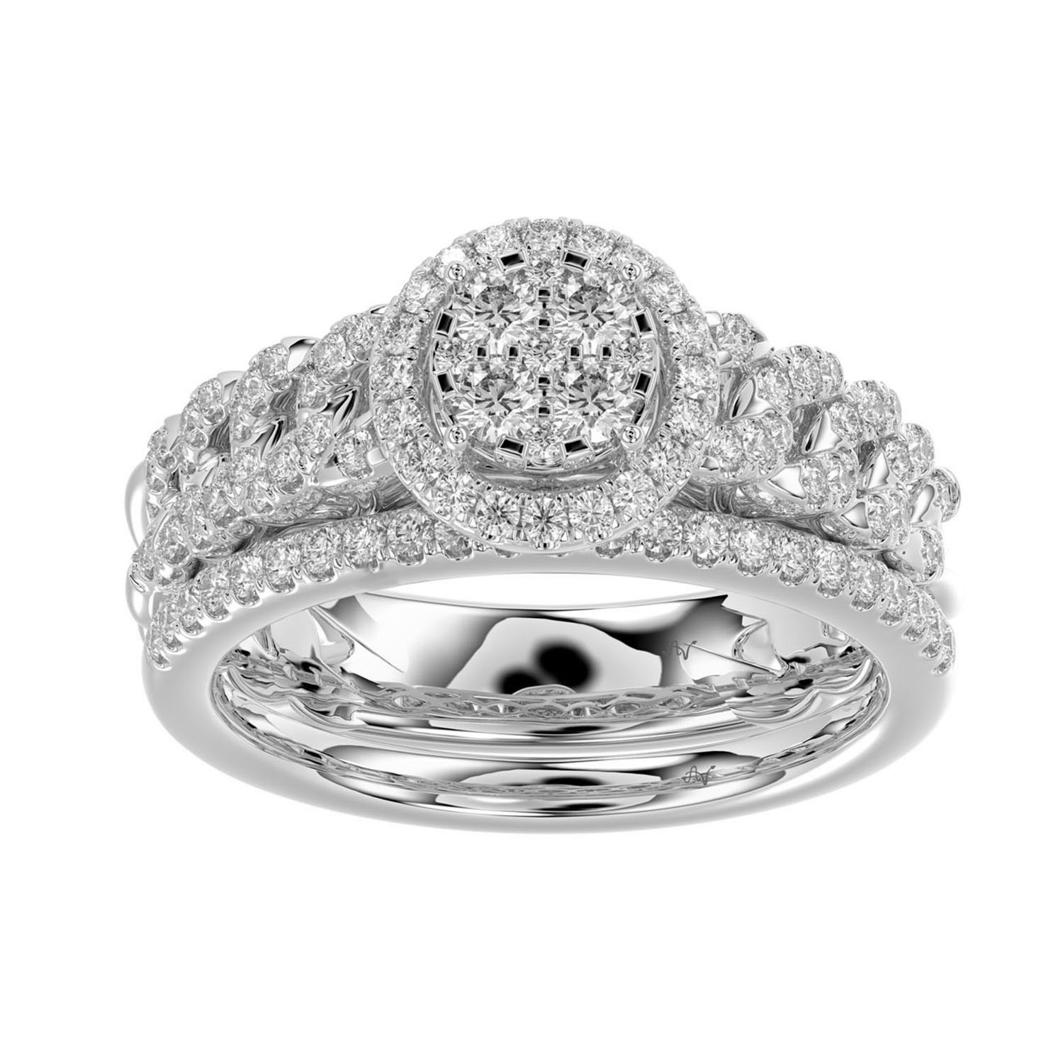 LADIES BRIDAL SET 0.75CT ROUND DIAMOND 14K WHITE GOLD