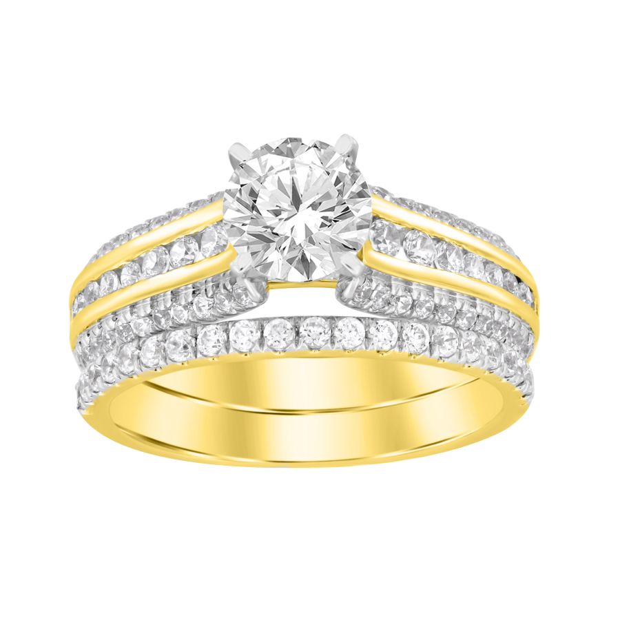 LADIES BRIDAL SET 0.75CT ROUND DIAMOND 14K YELLOW GOLD