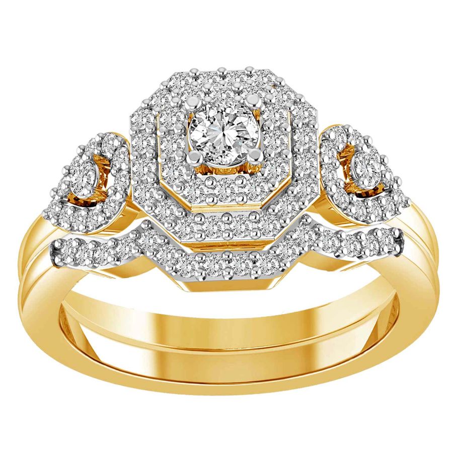 LADIES BRIDAL SET 0.75CT ROUND DIAMOND 14K YELLOW GOLD