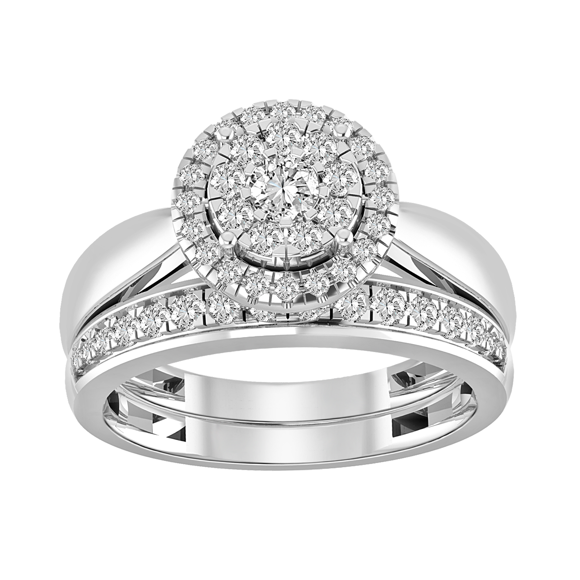 LADIES BRIDAL SET 1.00CT ROUND DIAMOND 14K WHITE GOLD