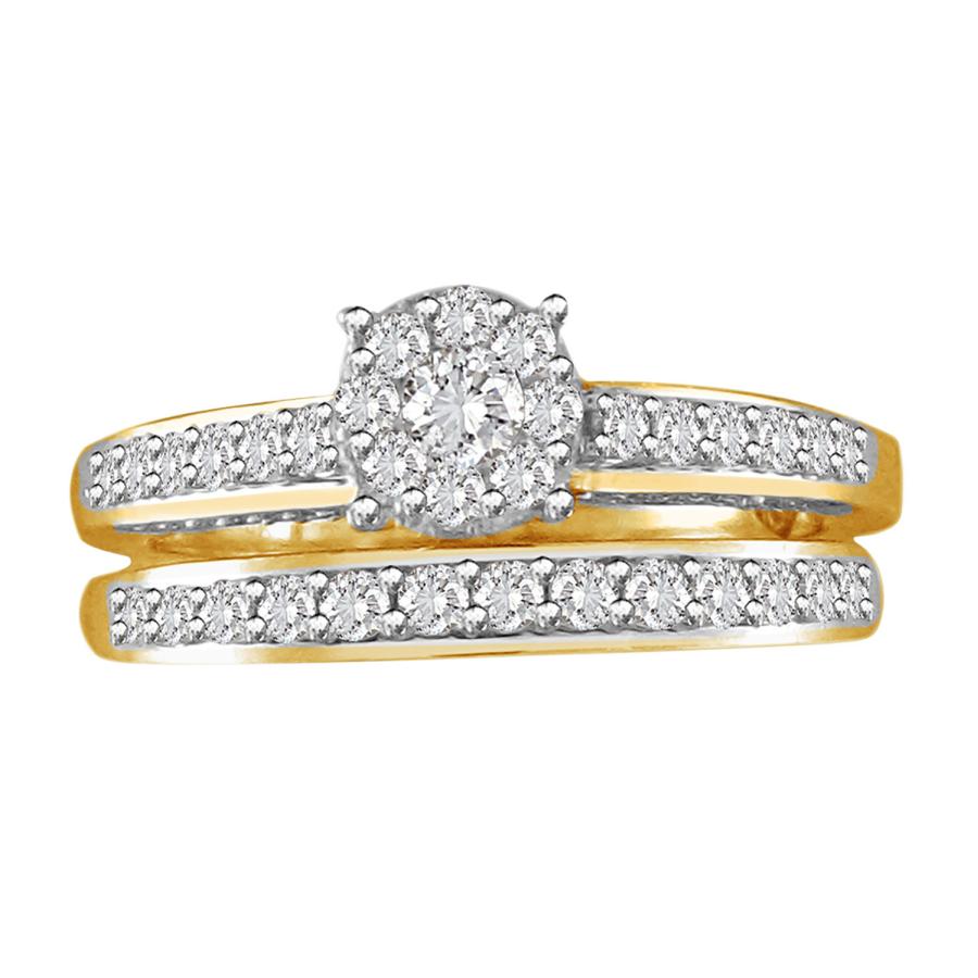 LADIES BRIDAL SET 0.75CT ROUND DIAMOND 14K YELLOW GOLD