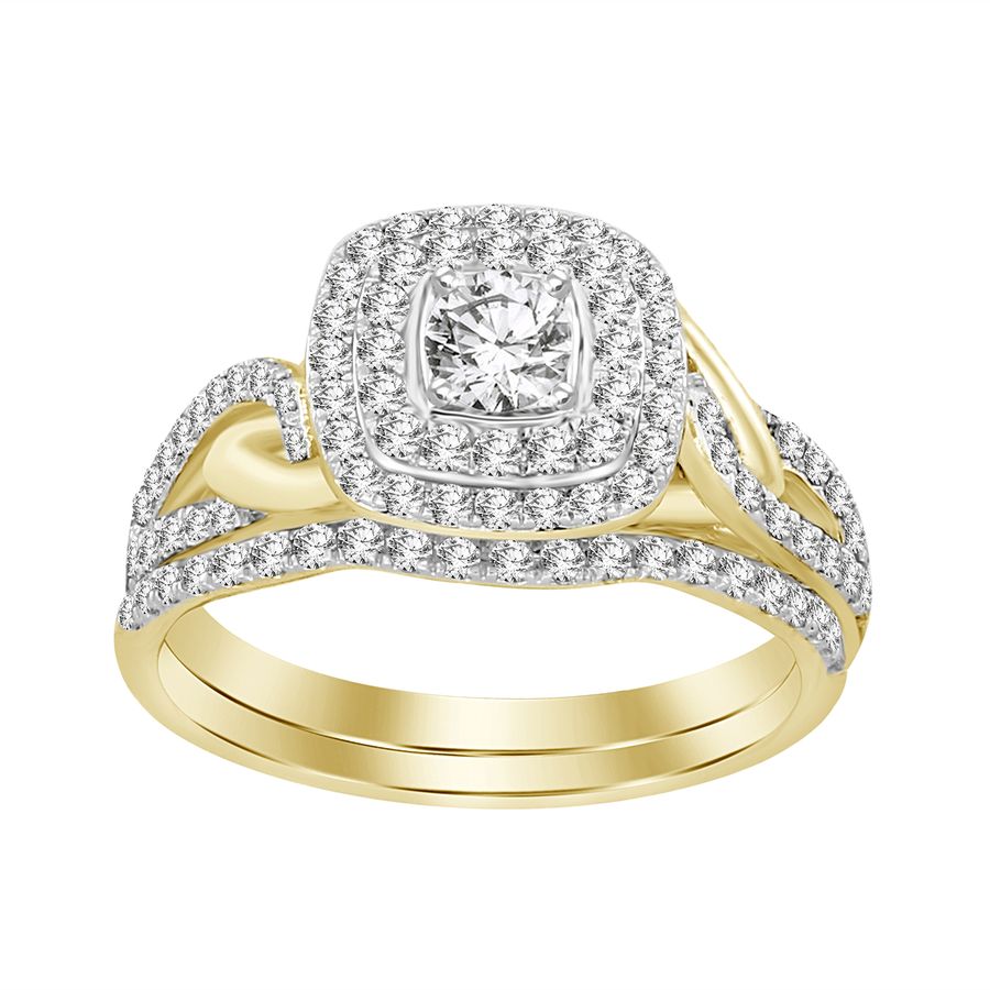 LADIES BRIDAL SET 0.75CT ROUND DIAMOND 14K YELLOW GOLD (CENTER STONE 0.10CT ROUND DIAMOND)