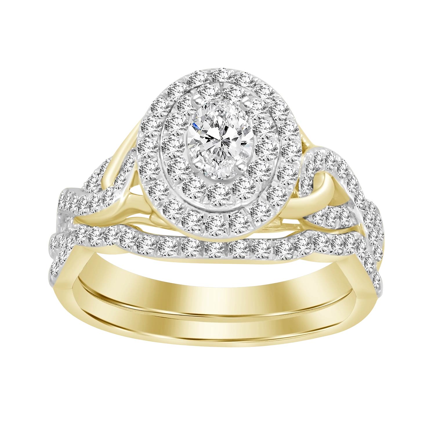 LADIES BRIDAL SET 0.75CT ROUND/OVAL DIAMOND 14K YELLOW GOLD (CENTER STONE 0.10CT ROUND DIAMOND)
