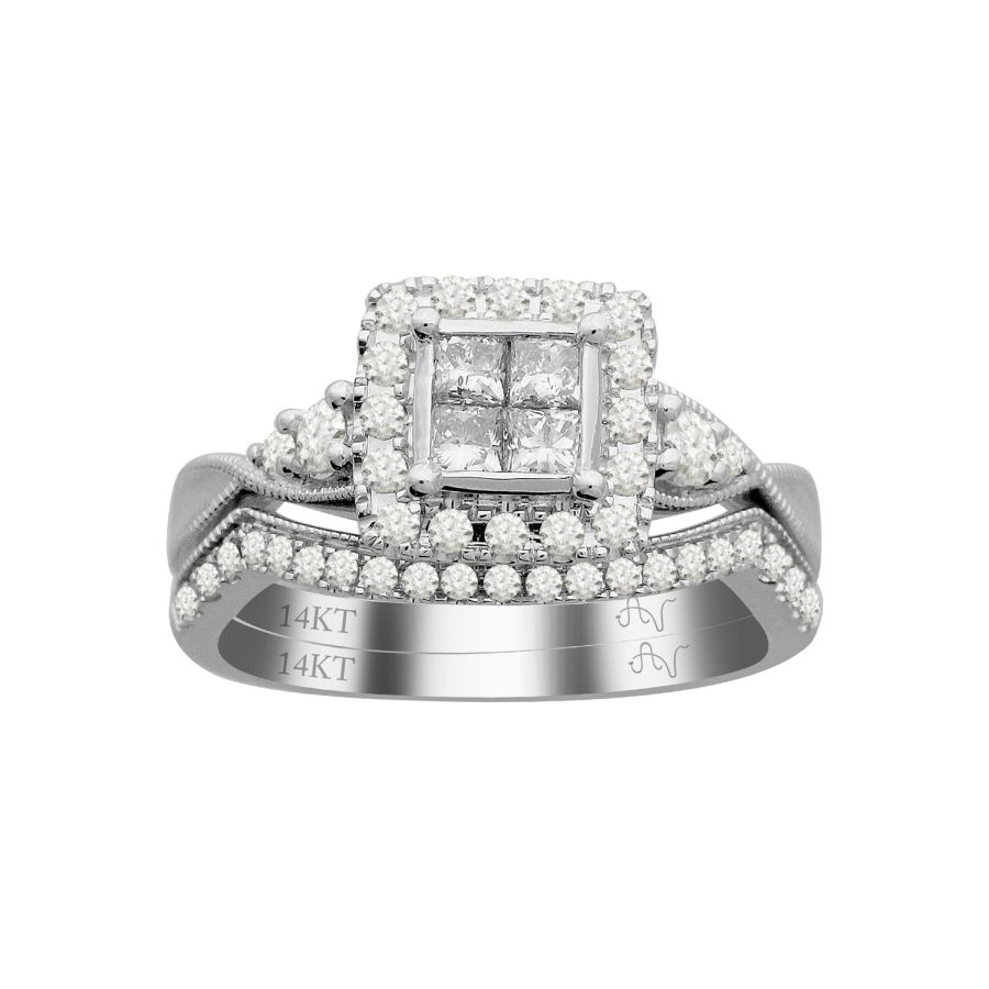 LADIES BRIDAL SET 0.75CT ROUND/PRINCESS DIAMOND 14K WHITE GOLD