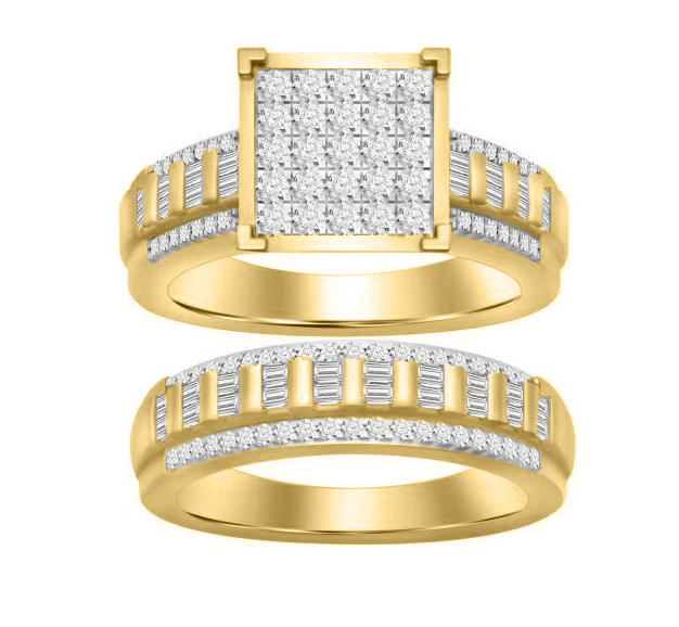LADIES BRIDAL SET 0.80CT ROUND/BAGUETTE DIAMOND 10K YELLOW GOLD