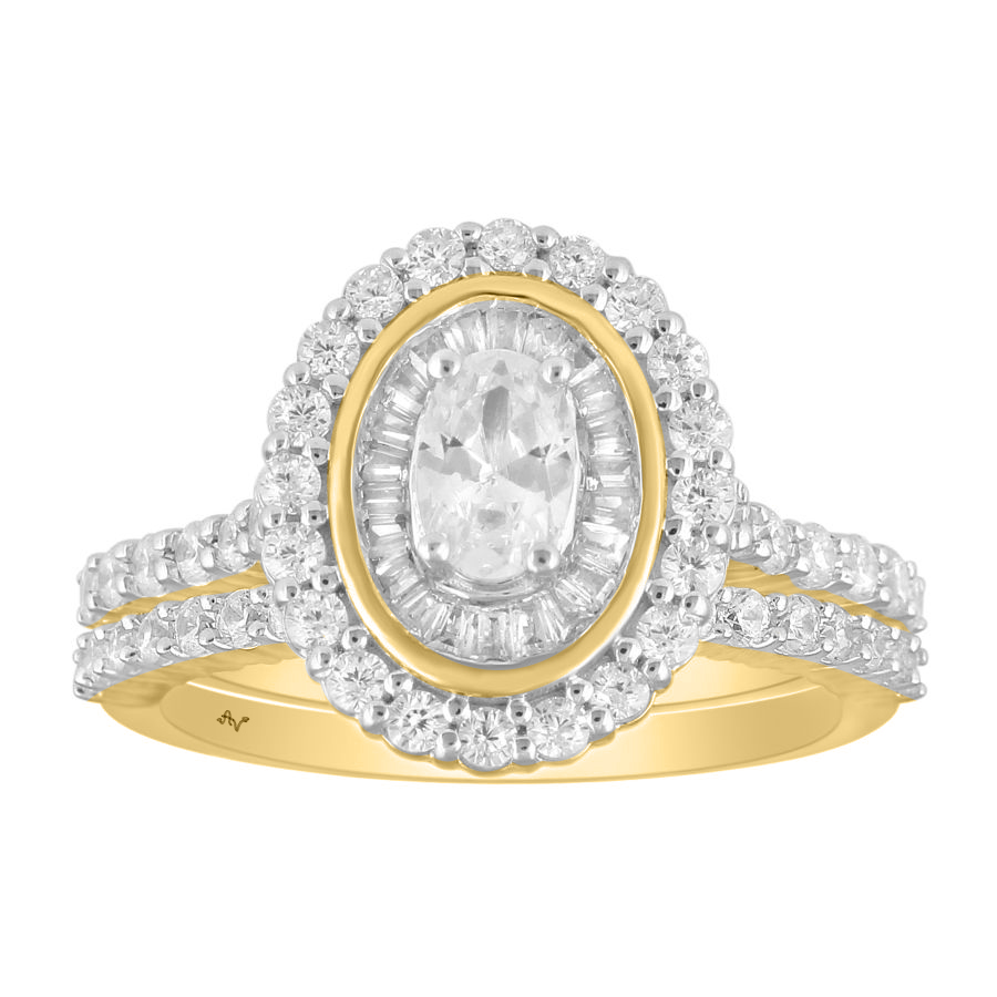 LADIES BRIDAL SET 0.90CT ROUND/BAGUETTE DIAMOND 14K YELLOW GOLD (CENTER STONE 0.33CT OVAL DIAMOND)