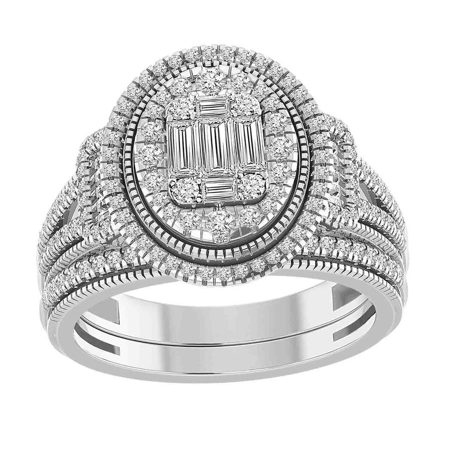 Home Rings LADIES BRIDAL SET 1.00CT ROUND/BAGUETTE DIAMOND 14K WHITE GOLD