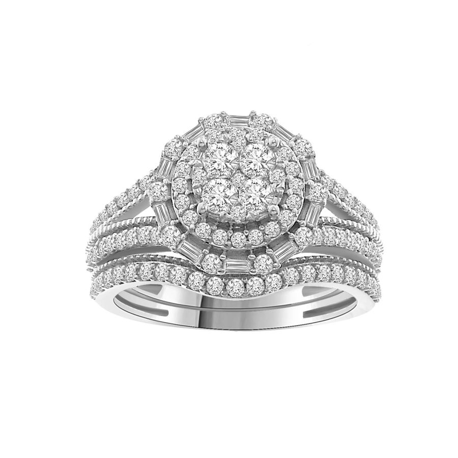 Home Rings LADIES BRIDAL SET 1.00CT ROUND/BAGUETTE DIAMOND 14K WHITE GOLD