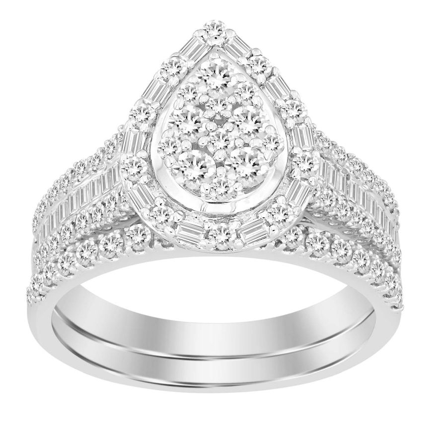Home Rings LADIES BRIDAL SET 1.00CT ROUND/BAGUETTE DIAMOND 14K WHITE GOLD