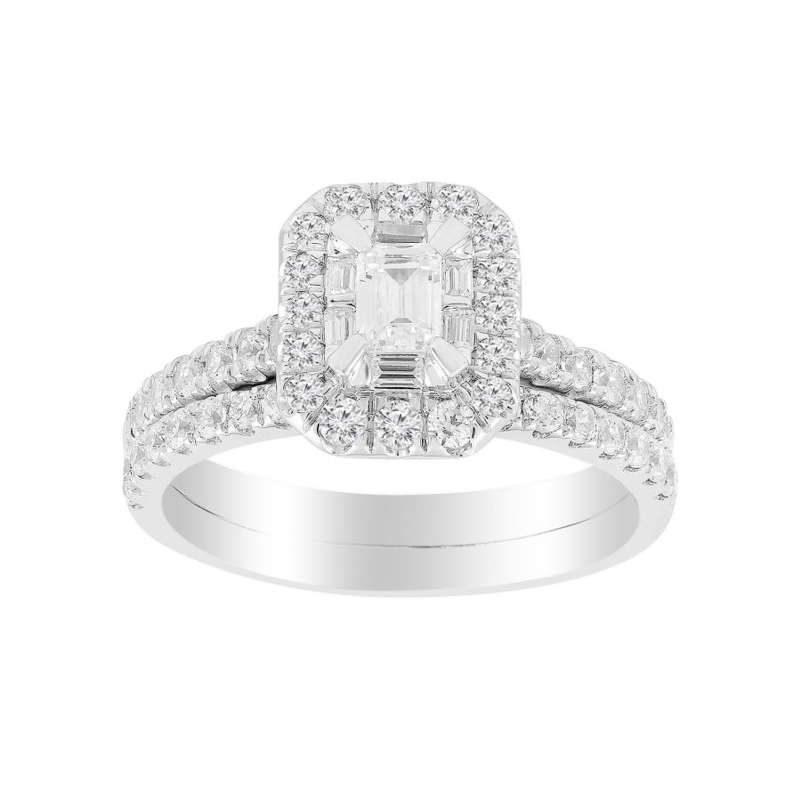 LADIES BRIDAL SET 1.00CT ROUND/EMERALD DIAMOND 14K WHITE GOLD (SI QUALITY)