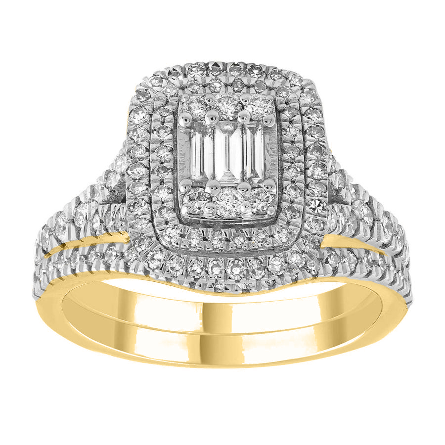 LADIES BRIDAL SET 1.00CT ROUND/BAGUETTE DIAMOND 14K YELLOW GOLD