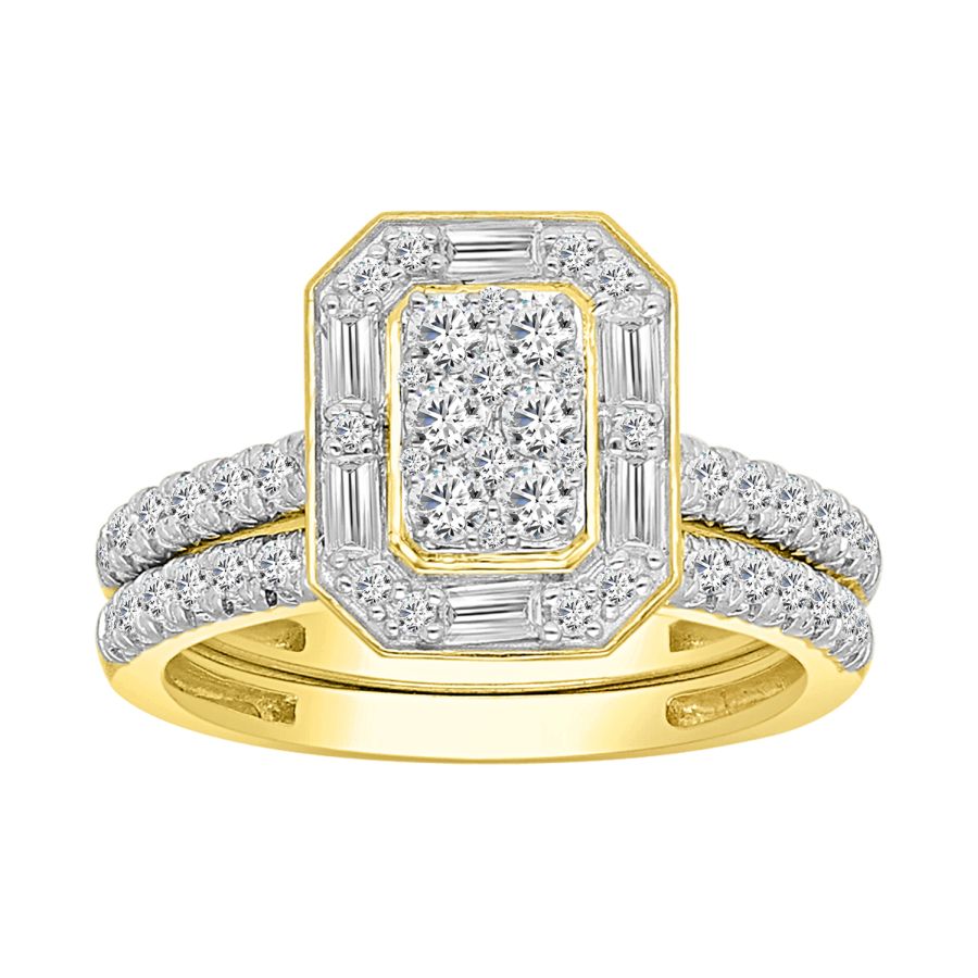 LADIES BRIDAL SET 1.00CT ROUND/BAGUETTE DIAMOND 14K YELLOW GOLD