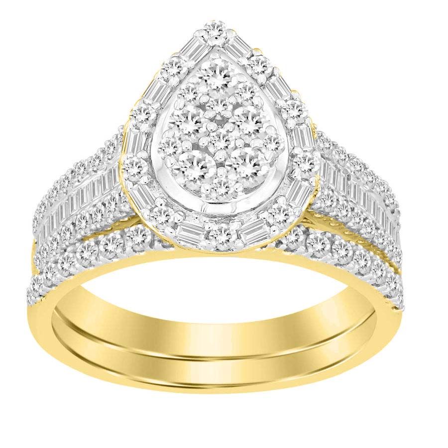 LADIES BRIDAL SET 1.00CT ROUND/BAGUETTE DIAMOND 14K YELLOW GOLD