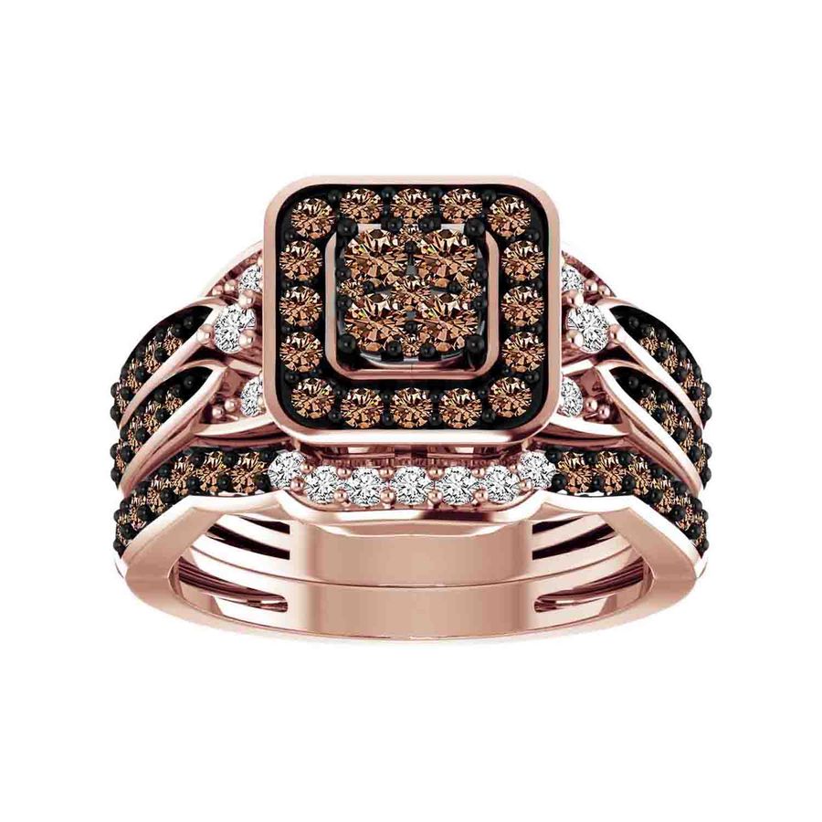 LADIES BRIDAL SET 1.00CT ROUND DARK BROWN DIAMOND 14K ROSE GOLD