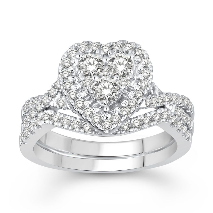 LADIES BRIDAL SET 1.00CT ROUND DIAMOND 10K WHITE GOLD