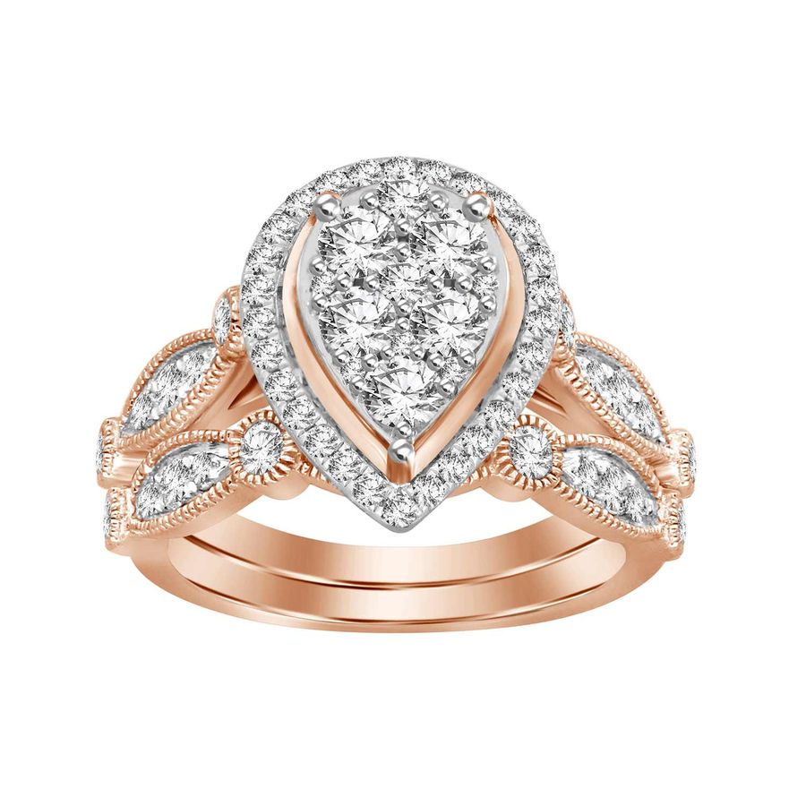 LADIES BRIDAL SET 1.00CT ROUND DIAMOND 14K ROSE GOLD