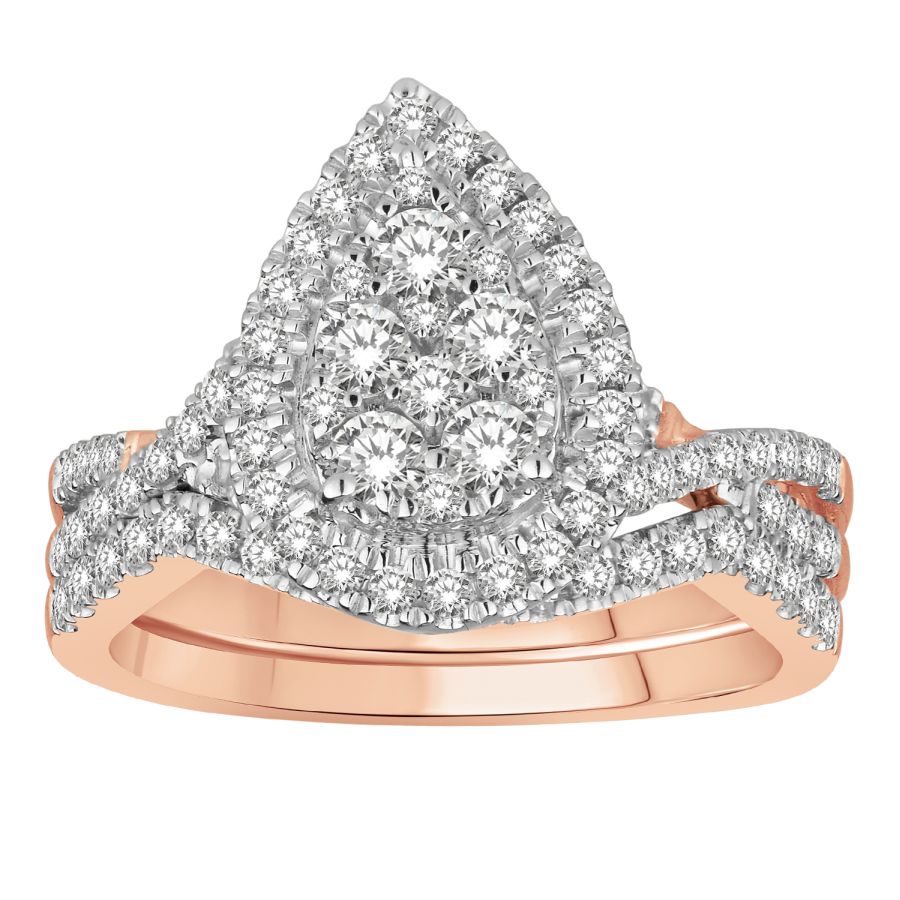 LADIES BRIDAL SET 1.00CT ROUND DIAMOND 14K ROSE GOLD