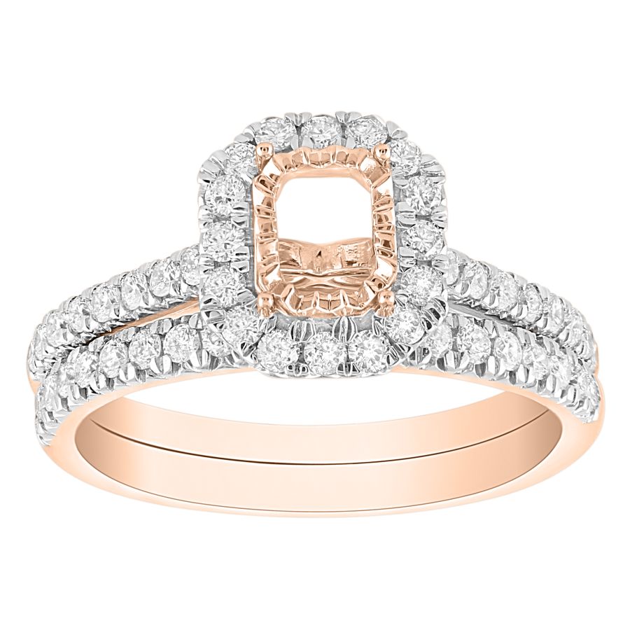 LADIES BRIDAL SET 1.00CT ROUND DIAMOND 14K ROSE GOLD (CENTER STONE 0.40CT EMERALD DIAMOND)