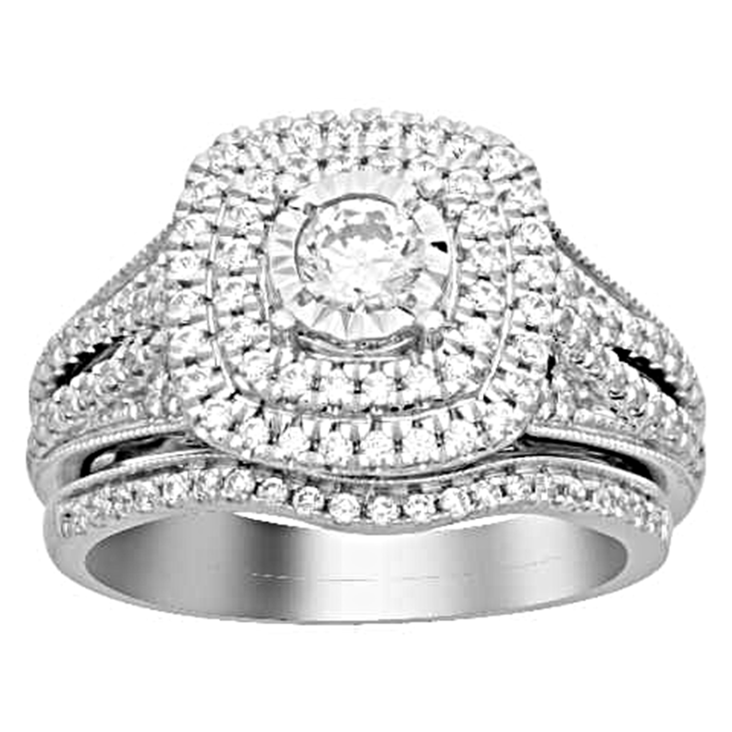 LADIES BRIDAL SET 1.00CT ROUND DIAMOND 14K WHITE GOLD