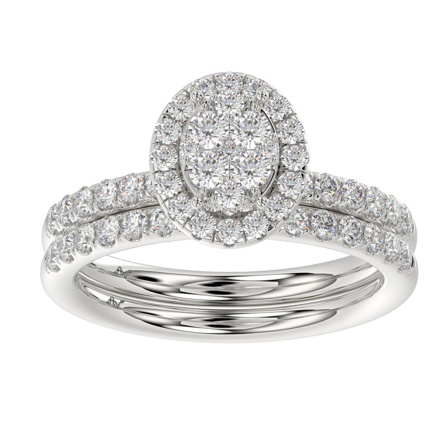 LADIES BRIDAL SET 1.00CT ROUND DIAMOND 14K WHITE GOLD