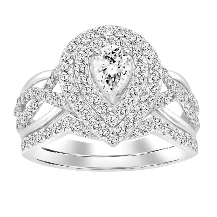 LADIES BRIDAL SET 1.00CT ROUND DIAMOND 14K WHITE GOLD (CENTER STONE 0.20CT PEAR DIAMOND)