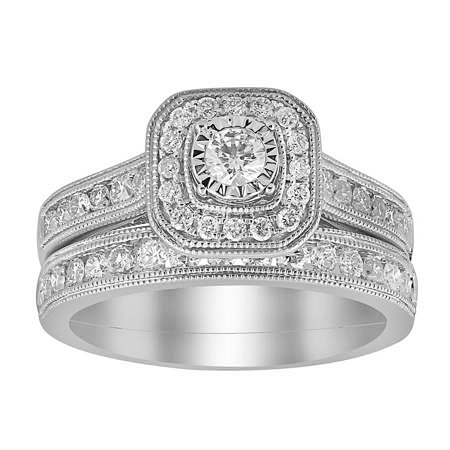 Home Rings LADIES BRIDAL SET 1.00CT ROUND DIAMOND 14K WHITE GOLD (CENTER STONE 0.25CT ROUND DIAMOND)