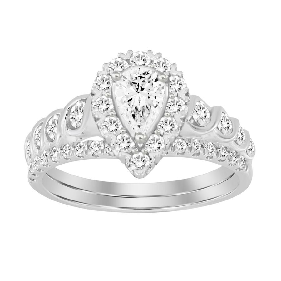 LADIES BRIDAL SET 1.00CT ROUND DIAMOND 14K WHITE GOLD (CENTER STONE 0.33CT PEAR DIAMOND)