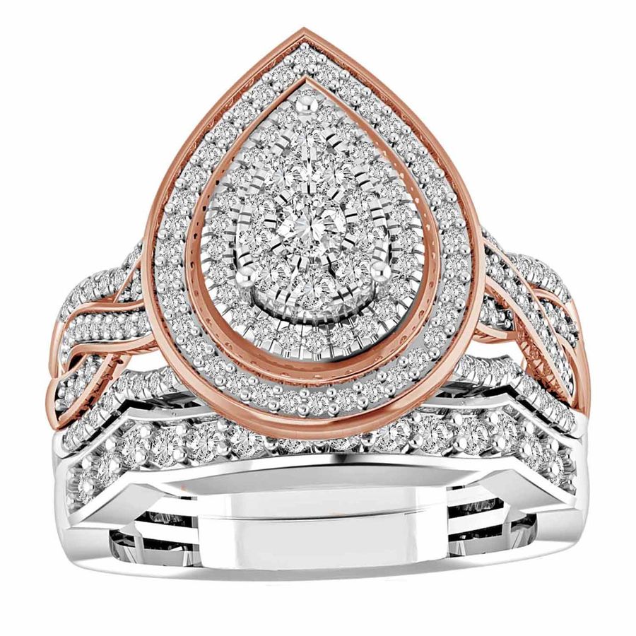 Home Rings LADIES BRIDAL SET 1.00CT ROUND DIAMOND 14K WHITE/ROSE GOLD