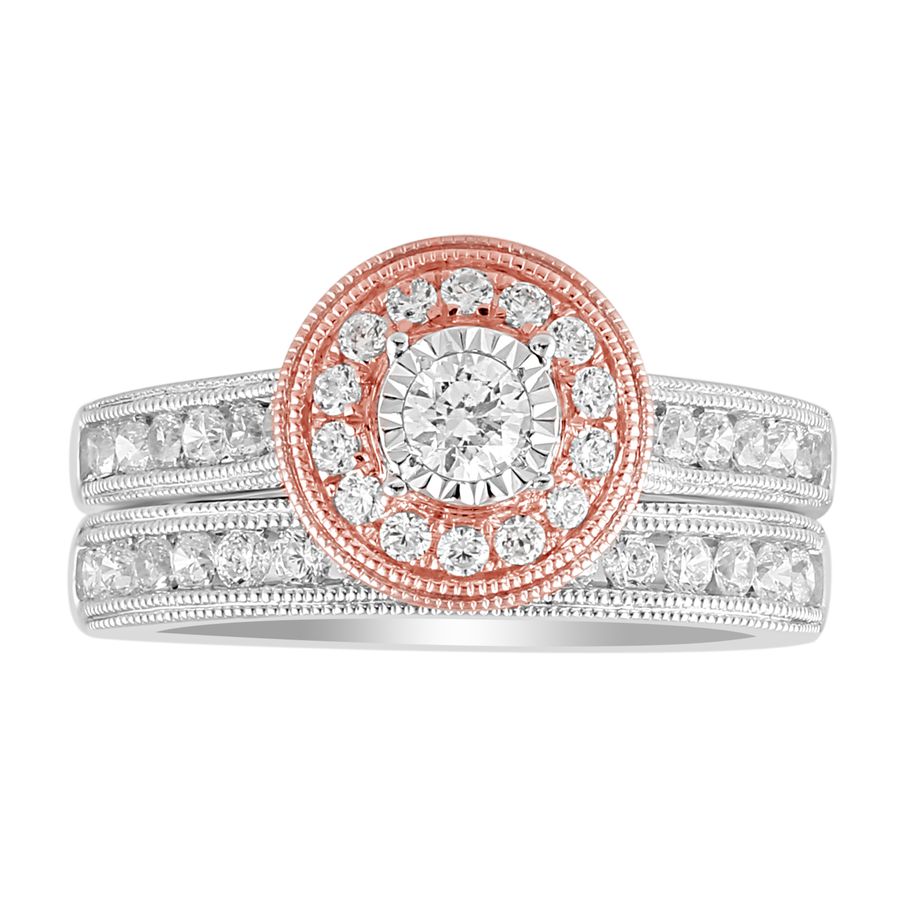 LADIES BRIDAL SET 1.00CT ROUND DIAMOND 14K WHITE/ROSE GOLD